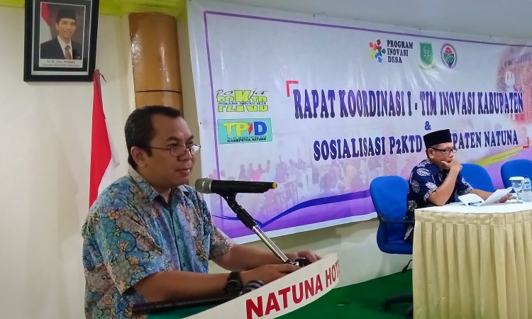 Dinas Pemberdayaan Masyarakat dan Desa (DPMD) kabupaten Natuna menggelar rapat koordinasi pertama tim inovasi kabupaten (TIK), dan sosialisasi P2KTD kabupaten Natuna, di Natuna Hotel, pada Jumat, 5 Juli 2019 malam.